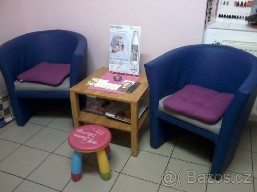 Nabízím k prodeji kompletní vybavení do kadeřnickéhosalonu. Komplet obsahuje:1x recepce,2x kadeřnické křeslo,1x kadeřnická obsluha se zrcadlem,1x mycí box,1x dětská židle na stříhání,1x pojízdný vozík, 1x podnožník, 1x velký osvětlený stojan,1x malý stojan,1x malá kuchyňská linka na přípravu materiálu,polička,2x křeslo a konferenční stolek. Vše barevně laděné.